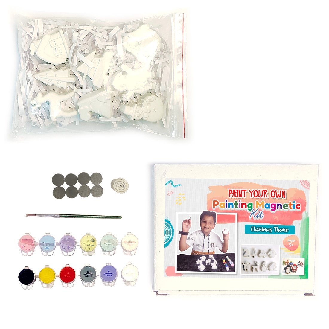 With 12 bright paint colors, children can mix, experiment, and personalize each piece. Once painted, attach the included magnets to proudly display creations on refrigerators, boards, or metal surfaces.